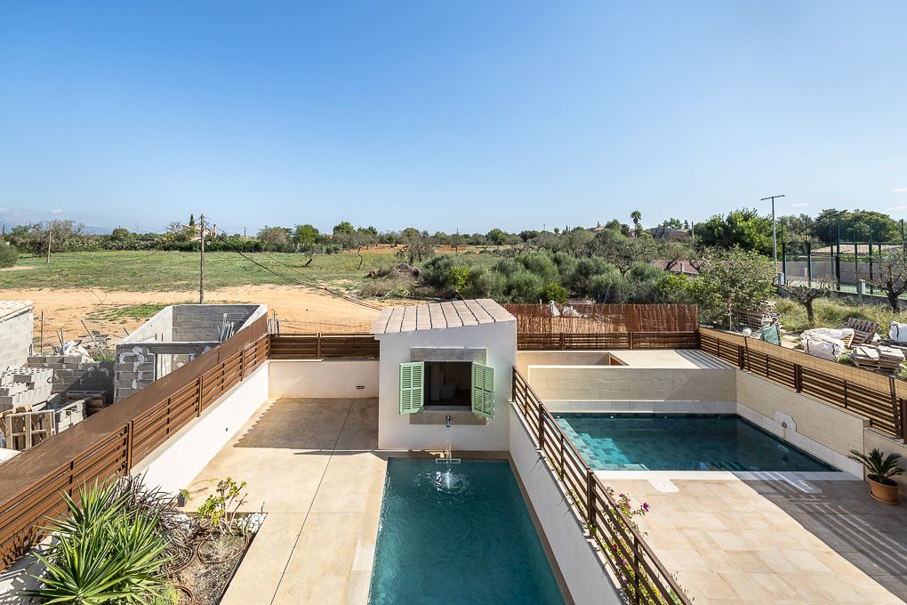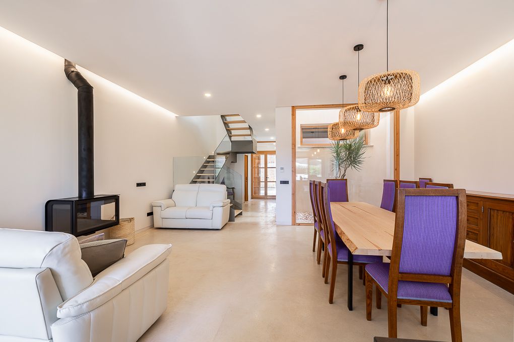 Detta nybyggda radhus ligger i staden Biniali. Konstruktionen har utförts till en mycket hög standard och huset har en modern men ändå mallorcansk atmosfär. En ljus entréhall med ett intilliggande badrum leder till vardagsrummet med öppen planlösning, som är anslutet till köket. Därifrån har man direkt tillgång till terrassen och poolen. Utomhusområdet har också ett komplett badrum. Huset erbjuder direkt tillgång till garaget. På första våningen finns tre sovrum med en-suite badrum. Ett av sovrummen har en privat terrass. Hela fastigheten är utrustad med golvvärme och luftkonditionering. Andra egenskaper: Golvvärme, luftkonditionering, hög kvalitet, garage, inflyttningsklar.