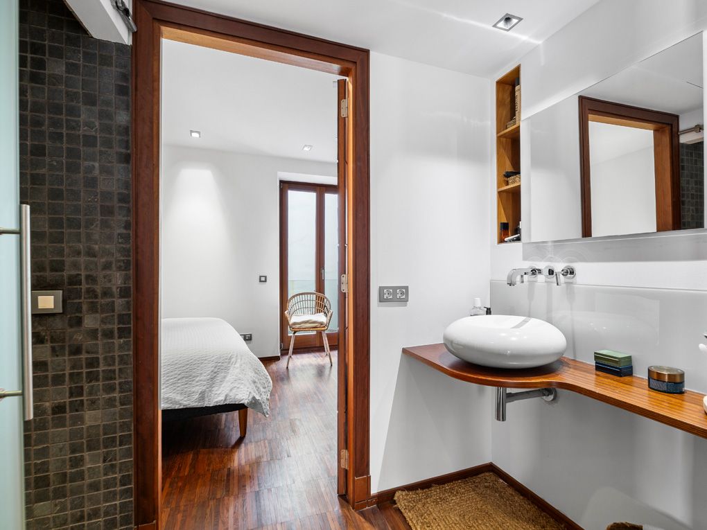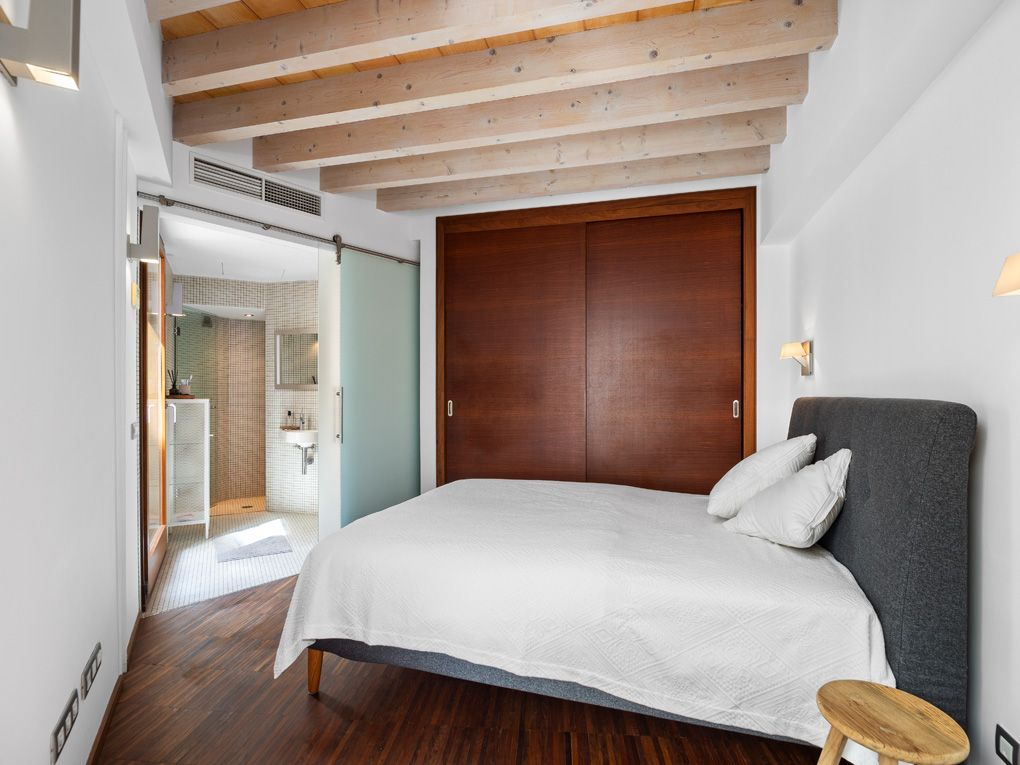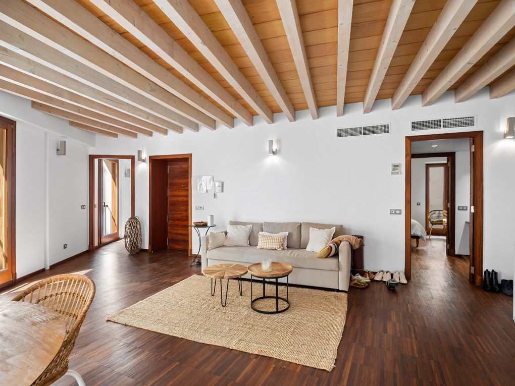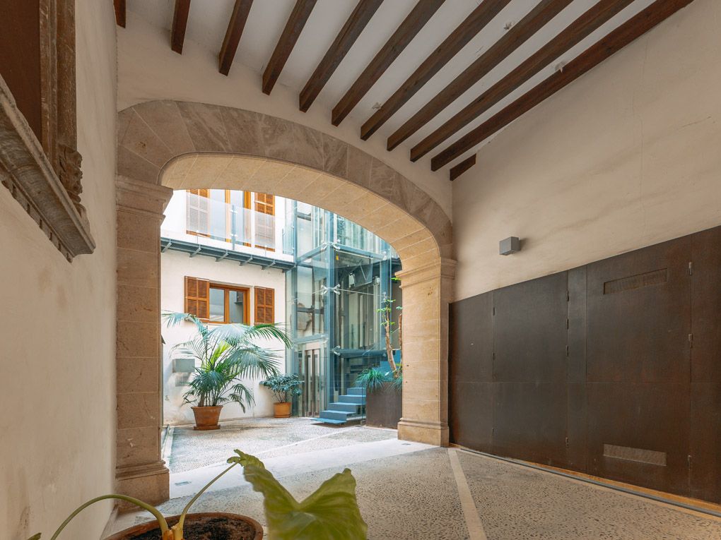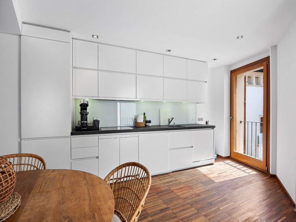 Denna karaktärsfulla och moderna lägenhet ligger i centrum av den mest prestigefyllda stadsdelen i gamla stan: Calatrava, direkt bakom katedralen. Alla bekvämligheter som ett sådant centralt läge innebär finns i omedelbar närhet, men lägenheten ligger ändå i ett lugnt läge. Lägenheten ligger på första våningen i en byggnad som totalrenoverades 2007 med ett vackert entréområde och består av ett rymligt vardagsrum och matplats med integrerat kök, totalt tre balkonger och två sovrum med två badrum utrustade med duschar. De traditionella träbjälkarna och det eleganta parkettgolvet bidrar till den klassiska charmen i denna annars ultramoderna fastighet. Fönstren från golv till tak och balkongerna, som vetter mot sydväst, fyller rummen med naturligt ljus. Ytterligare bekvämligheter inkluderar ett kassaskåp, intercom-system, centraliserat varmvatten, värme- och vattenavhärdningssystem, dubbelglasade fönster och golvvärme för att hålla dig mysig och varm under kallare dagar. Som grädde på moset har byggnaden också en egen stor underjordisk parkeringsplats som kan hyras för €300/månad och nås via glashissen. Ta vara på denna möjlighet och njut av tidlöst elegant boendekultur på ett privilegierat läge i Palma.
