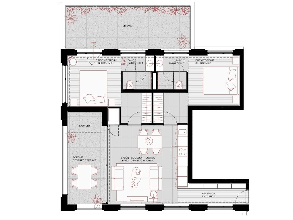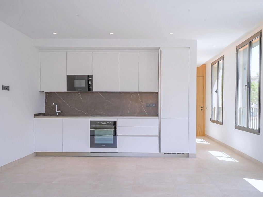 Det moderna bostadsområdet "Bellver Place" med 8 lägenheter och 2 takvåningar med havsutsikt samt en liten gemensam pool ligger i Palmas stadsdel Son Armadams, bara några minuters promenad från det vackra slottet Bellver och den stora gröna parken som omger det. Hamnen i Palma, den trendiga stadsdelen Santa Catalina och stadens centrum ligger också inom gångavstånd. Olika butiker och restauranger finns precis utanför dörren. Den tilltalande arkitekturen och designen, som huvudsakligen använder naturmaterial, samt träarbeten på fasaden, tillsammans med vackra planteringar, skapar en liten oas i staden. Det finns 2 lägenheter på varje våning i byggnaden, som alla erbjuder en öppen planlösning med vardagsrum och matplats med ett integrerat kök, fönster från golv till tak och tillgång till en terrass. Mittpunkten i de två takvåningarna är den privata takterrassen med pool och loungeområde och en fantastisk utsikt över hamnen och katedralen. Alla lägenheter från första våningen och uppåt har 2 dubbelrum med eget badrum, minst ett av dem har också tillgång till en terrass. Lägenheterna på bottenvåningen är utrustade med 1-2 sovrum och 1-2 badrum. Dessutom har alla enheter golvvärme, luftkonditionering, indirekt belysning och inredningssnickerier i ek. Porslinsgolven i mikrocementlook samt de designade köken och badrummen kommer från det välkända företaget Porcelanosa. Ett förråd för varje lägenhet och en parkeringsplats för takvåningarna ingår också i priset. För övriga lägenheter finns möjlighet att köpa till en parkeringsplats i det underjordiska garaget.
