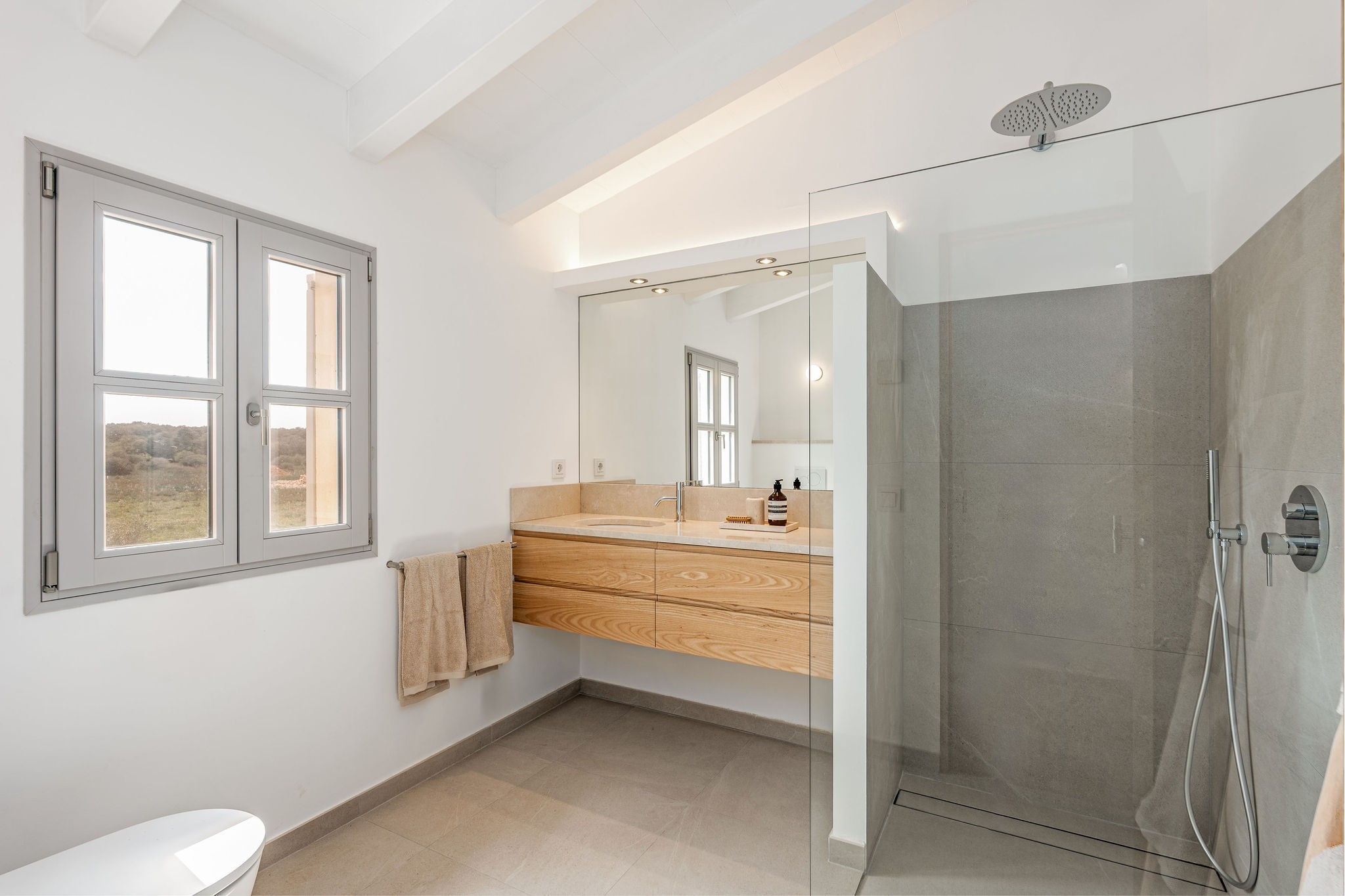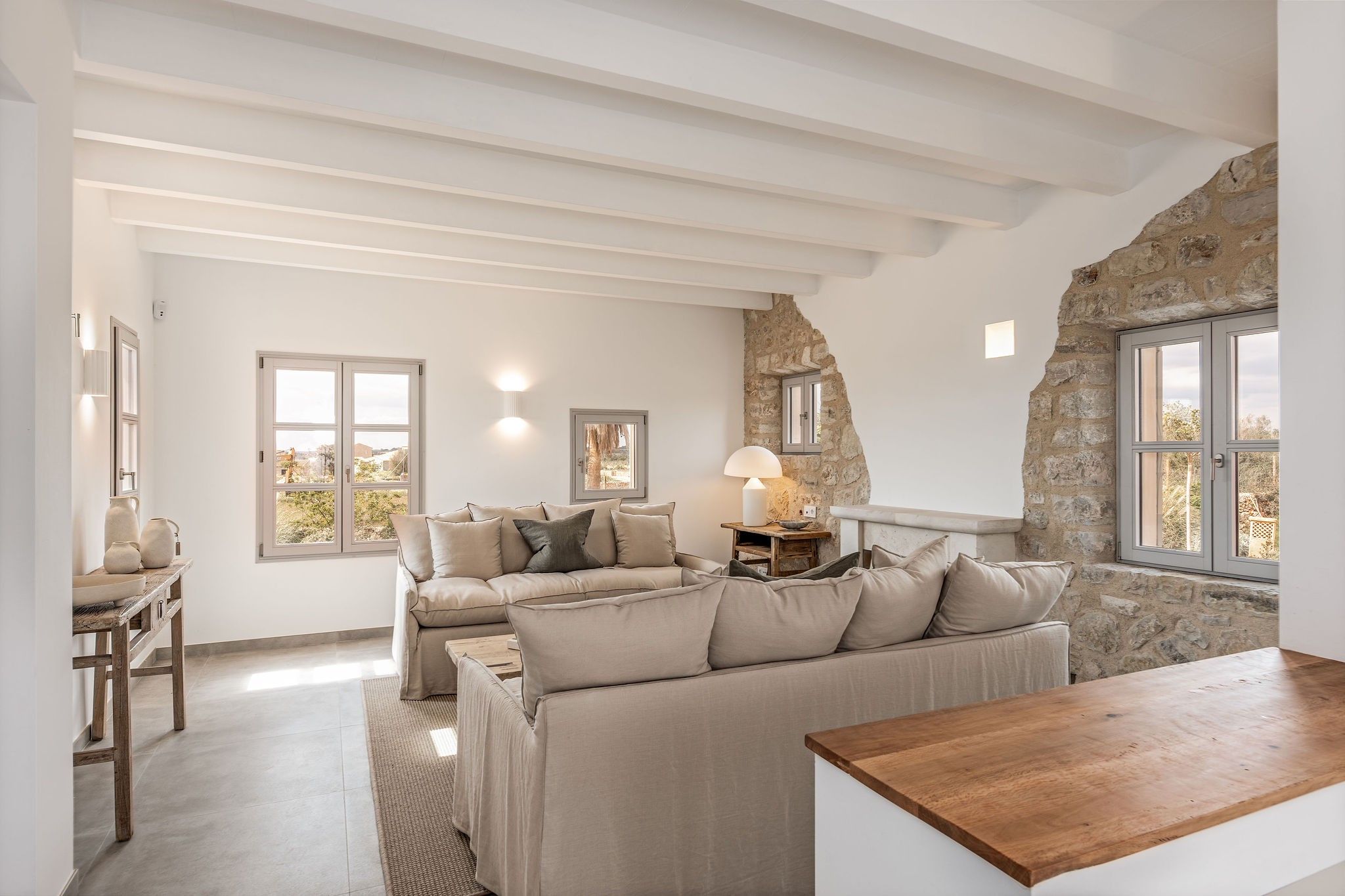 Denna vackra finca i natursten med en total yta på 225 m² ligger vid grindarna till Ses Salines. Den ligger på en tomt på ca 15 000 m² och erbjuder enastående utsikt över det kuperade landskapet. Med en typisk mallorkinsk exteriör, inuti hittar du ljusa rum med modern design. Naturliga element som trä och natursten kombineras med en harmonisk arkitektur. Du kommer in i huset, som sträcker sig över två våningar, genom en vacker entré in i det öppna vardagsrummet med öppen spis och ett tidlöst och fullt utrustat kök. En gästtoalett och ett rum som kan användas som tvättstuga eller kontor kompletterar bottenvåningen. Övervåningen består av tre rymliga sovrum, varav ett har ett eget badrum. De andra två sovrummen delar på det andra badrummet. Alla sovrum har fantastisk utsikt över den omgivande landsbygden. Golvvärme i hela huset garanterar behagliga temperaturer på vintern. Trädgården som kräver lite underhåll är den perfekta platsen för att njuta av underbara timmar med familj och vänner. Här finns en ca 35 kvm stor pool med utomhusdusch och en mysig loungegrupp. Ytterligare funktioner inkluderar: Förinstallation av fiberoptik och ett tekniskt rum. Kort sagt, en okomplicerad, modern finca med en charmig trädgård som är den perfekta utgångspunkten för att upptäcka det lantliga, autentiska Mallorca.