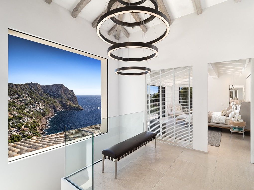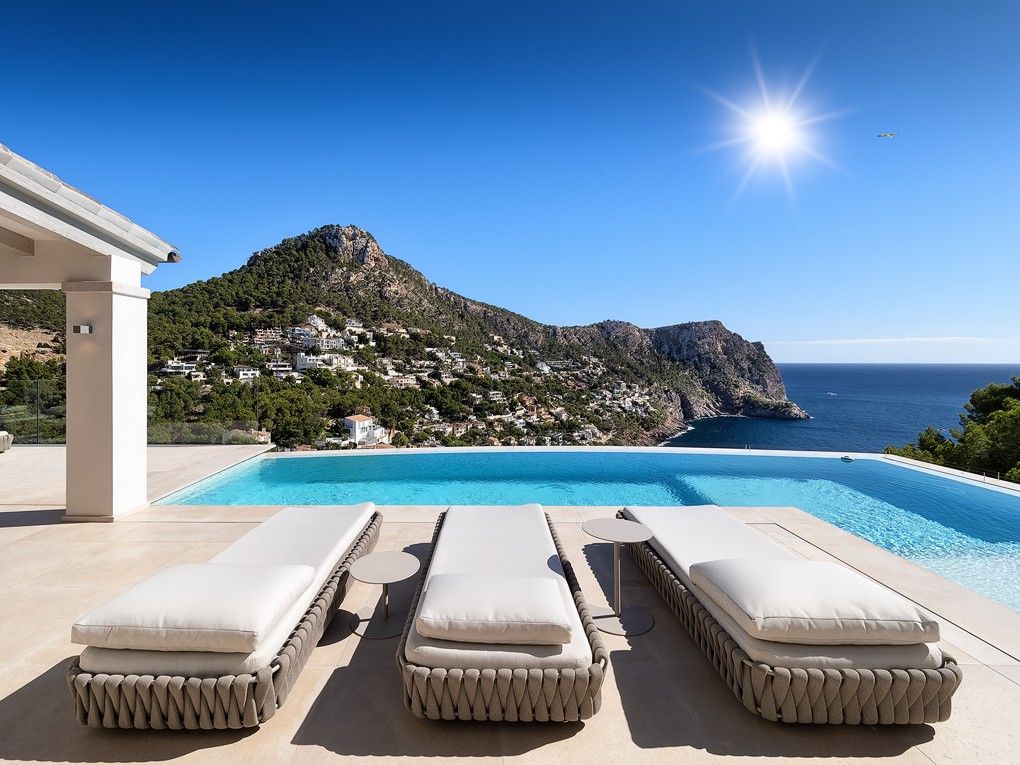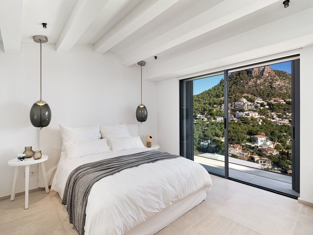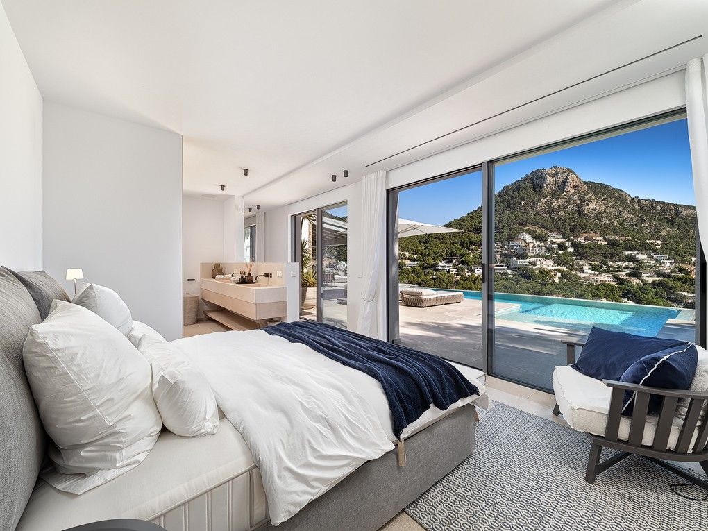 Denna totalrenoverade villa med hisnande utsikt över havet och bukten är en kombination där medelhavsstil möter moderna element. Fastigheten ligger i ett unikt upphöjt läge och erbjuder absolut avskildhet och lugn. "Villa Cinco har renoverats och möblerats med uppmärksamhet på detaljer. Livet i villan går med lätthet och korta avstånd, där det är lätt att stänga av och glömma vardagens liv och rörelse, även i utomhusområdet. Alla 5 sovrum har eget badrum. "Villa Cinco" erbjuder tillräckligt med utrymme både inom och utanför och är helt enkelt en personlig plats att dröja kvar och njuta av. Fastigheten är redo att flytta in och säljs möblerad med högkvalitativ inredning och möbler som Dada/Molteni, Bull, Flexform, Gervasoni, Occhio, Brokis, Baxter, Henge, Tribu och Sarsi. Den berömda hamnen i Port Andratx med sina många restauranger, barer och butiker kan nås på några minuter med bil. Särskilda funktioner inkluderar: Larmsystem, luftkonditionering varm / kall, golvvärme, KNX-system, amerikanskt kök av "Molteni / Dada" med Gaggenau elektriska apparater, 5 badrum med eget badrum, eldstäder, gästtoalett, "Molteni" inbyggda garderober, gym, bodega, dubbelgarage, sommarkök av "Bull" med grill, flera öppna och täckta terrasser och en stor infinitypool.