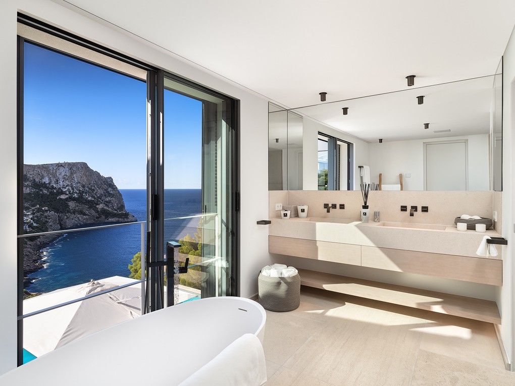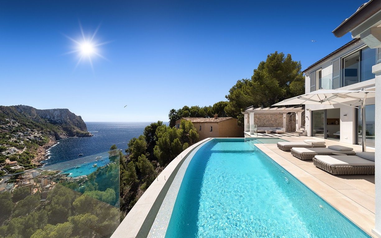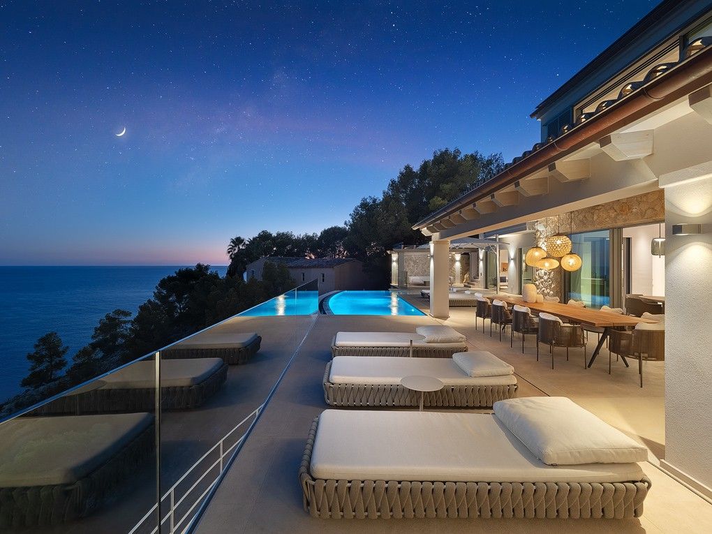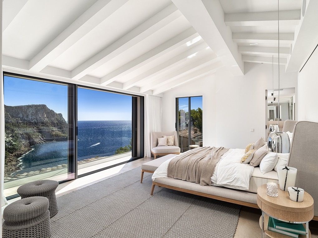 Denna totalrenoverade villa med hisnande utsikt över havet och bukten är en kombination där medelhavsstil möter moderna element. Fastigheten ligger i ett unikt upphöjt läge och erbjuder absolut avskildhet och lugn. "Villa Cinco har renoverats och möblerats med uppmärksamhet på detaljer. Livet i villan går med lätthet och korta avstånd, där det är lätt att stänga av och glömma vardagens liv och rörelse, även i utomhusområdet. Alla 5 sovrum har eget badrum. "Villa Cinco" erbjuder tillräckligt med utrymme både inom och utanför och är helt enkelt en personlig plats att dröja kvar och njuta av. Fastigheten är redo att flytta in och säljs möblerad med högkvalitativ inredning och möbler som Dada/Molteni, Bull, Flexform, Gervasoni, Occhio, Brokis, Baxter, Henge, Tribu och Sarsi. Den berömda hamnen i Port Andratx med sina många restauranger, barer och butiker kan nås på några minuter med bil. Särskilda funktioner inkluderar: Larmsystem, luftkonditionering varm / kall, golvvärme, KNX-system, amerikanskt kök av "Molteni / Dada" med Gaggenau elektriska apparater, 5 badrum med eget badrum, eldstäder, gästtoalett, "Molteni" inbyggda garderober, gym, bodega, dubbelgarage, sommarkök av "Bull" med grill, flera öppna och täckta terrasser och en stor infinitypool.