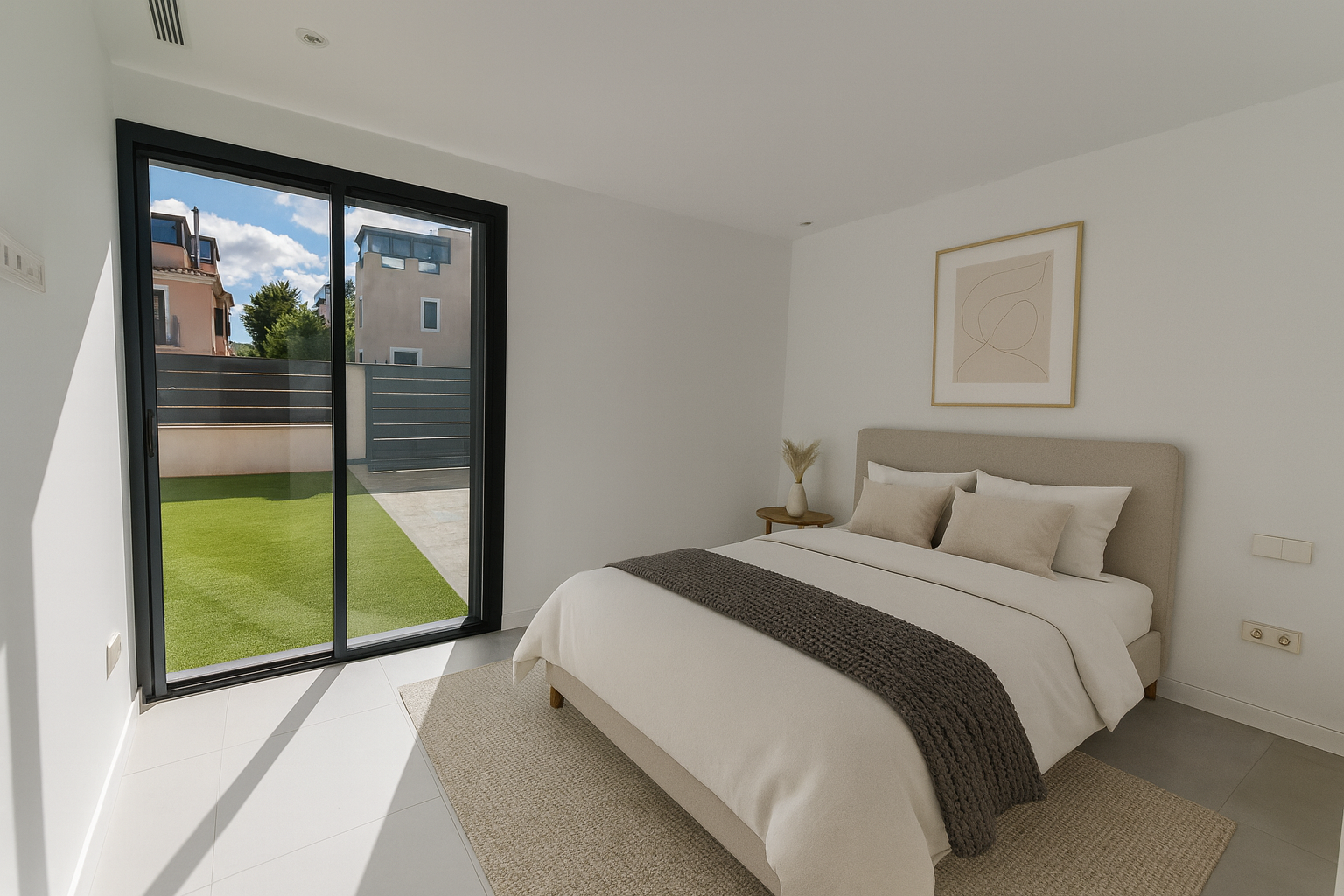 Detta parhus erbjuder de bästa funktionerna: elektrisk grind, golvvärme, luftkonditionering med kanalsystem, inbyggda garderober, texturerade aluminiumfönster med dubbla glasrutor och parkeringsplats utomhus. Allt har utformats för att erbjuda maximal komfort och säkerhet i ditt hem.