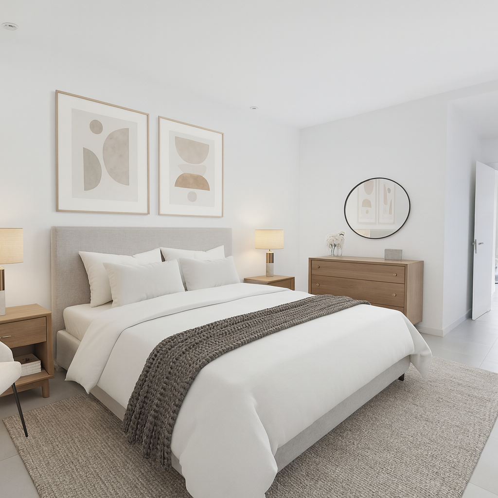 Detta exklusiva parhus från 2023 erbjuder en intelligent och elegant layout som maximerar utrymme och naturligt ljus. På bottenvåningen finns ett vardagsrum med matplats och ett integrerat kök som skapar en öppen och flytande atmosfär - perfekt för vardagslivet. Här finns också ett sovrum och ett fullt utrustat badrum med dusch.