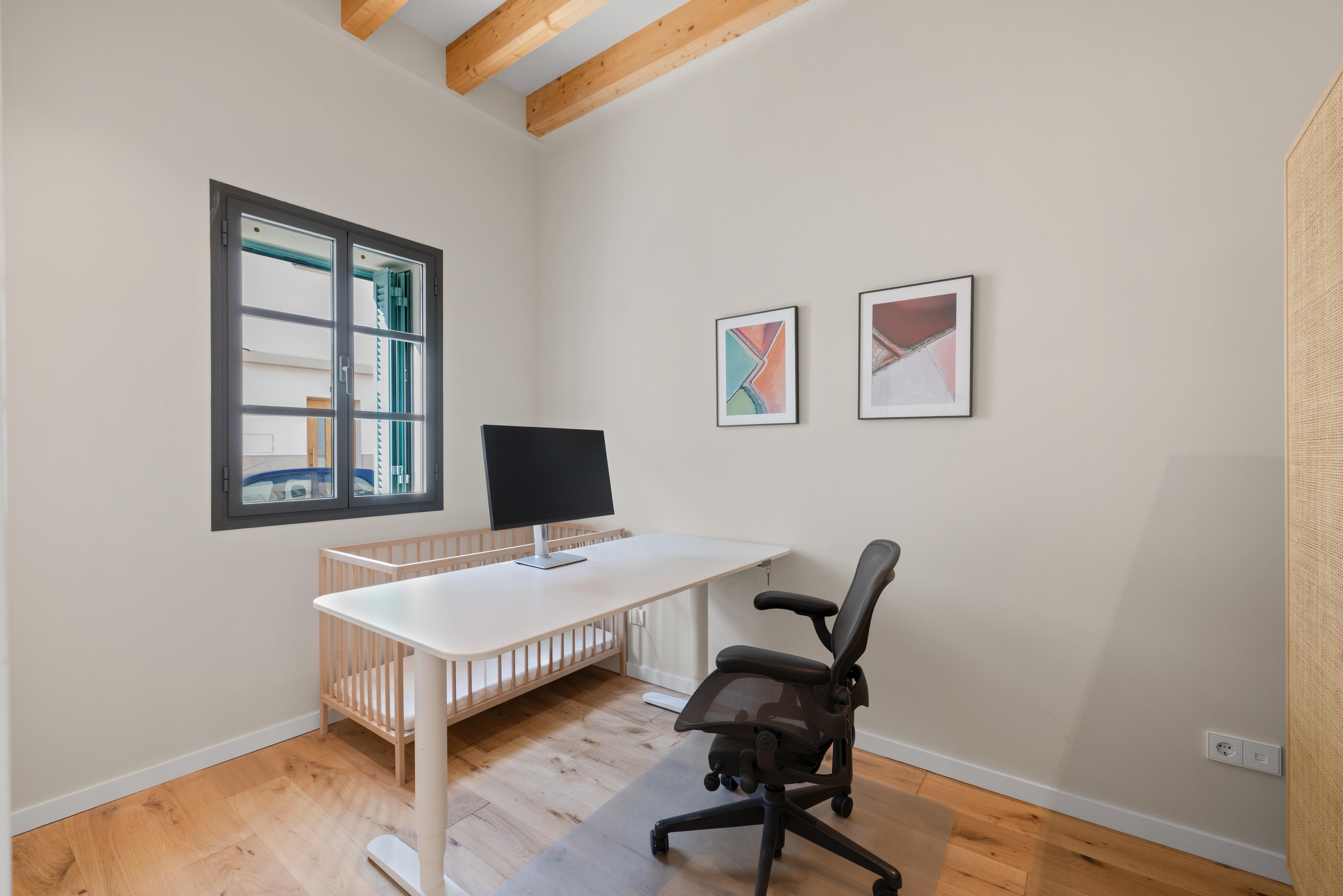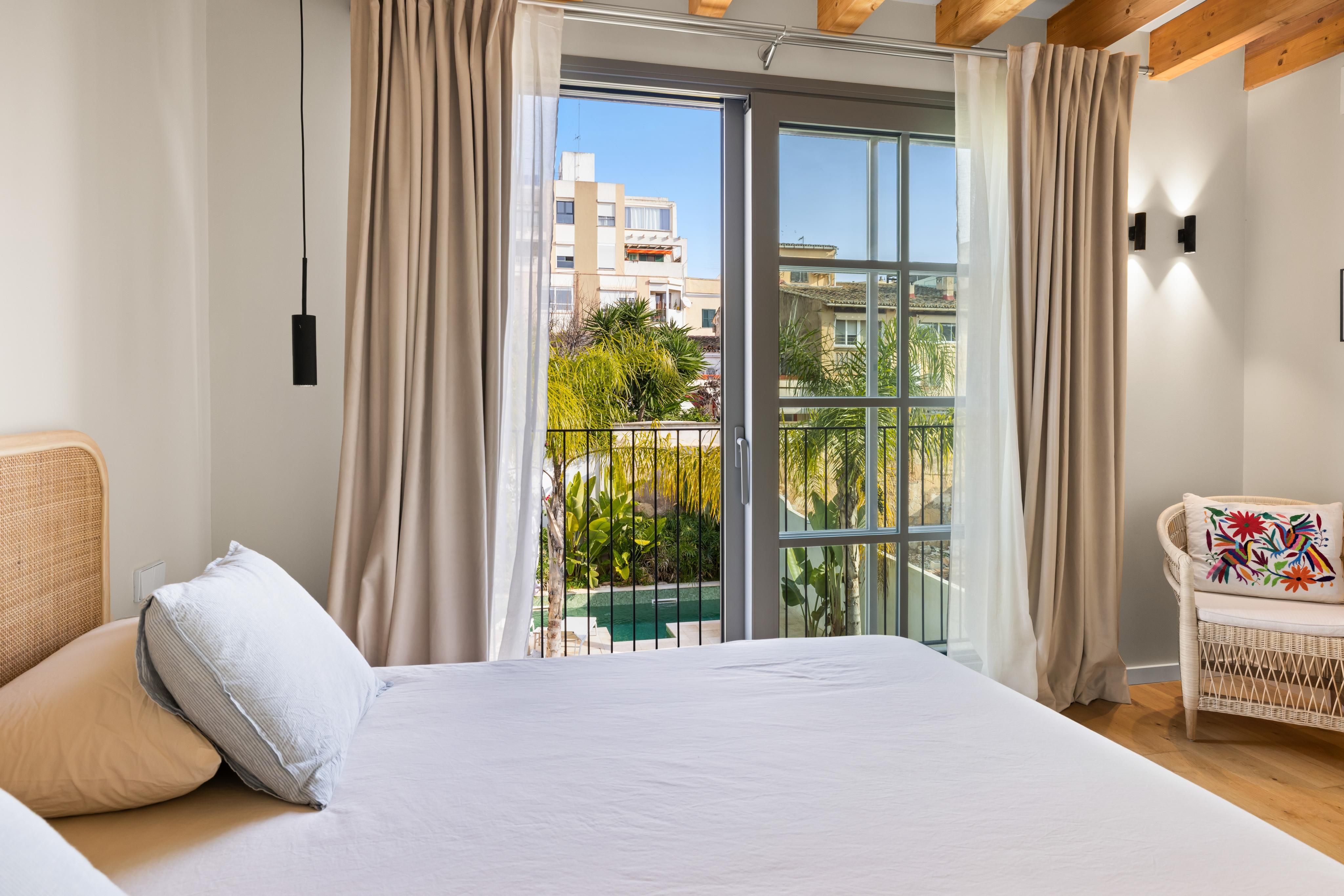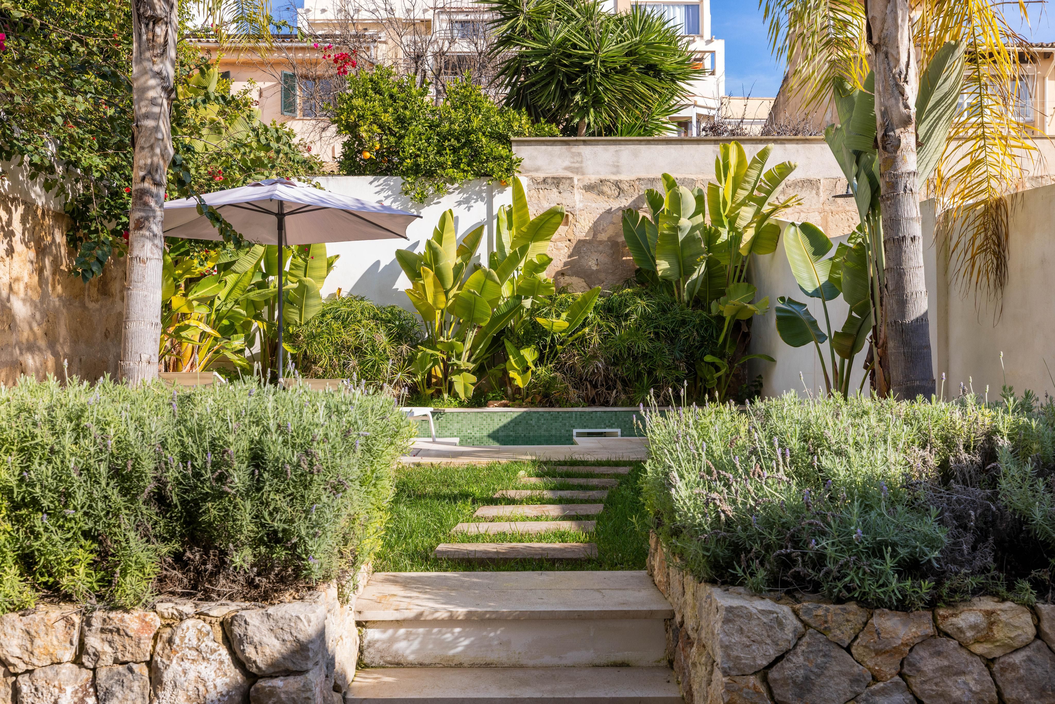 Detta vackra radhus i Palma kombinerar modernt, centralt boende med mysig avskildhet och erbjuder ett exceptionellt hem som inbjuder till både avkoppling och underhållning. Kliv in och möts av ett inbjudande vardagsrum och kök som flyter sömlöst in i de charmiga utomhusutrymmena. På bottenvåningen hittar du också ett separat kontor, en gästtoalett och direkt tillgång till trädgården med en fantastisk saltvattenpool, en utomhusdusch och två mysiga sittplatser, perfekt för avkoppling i fullständig avskildhet.