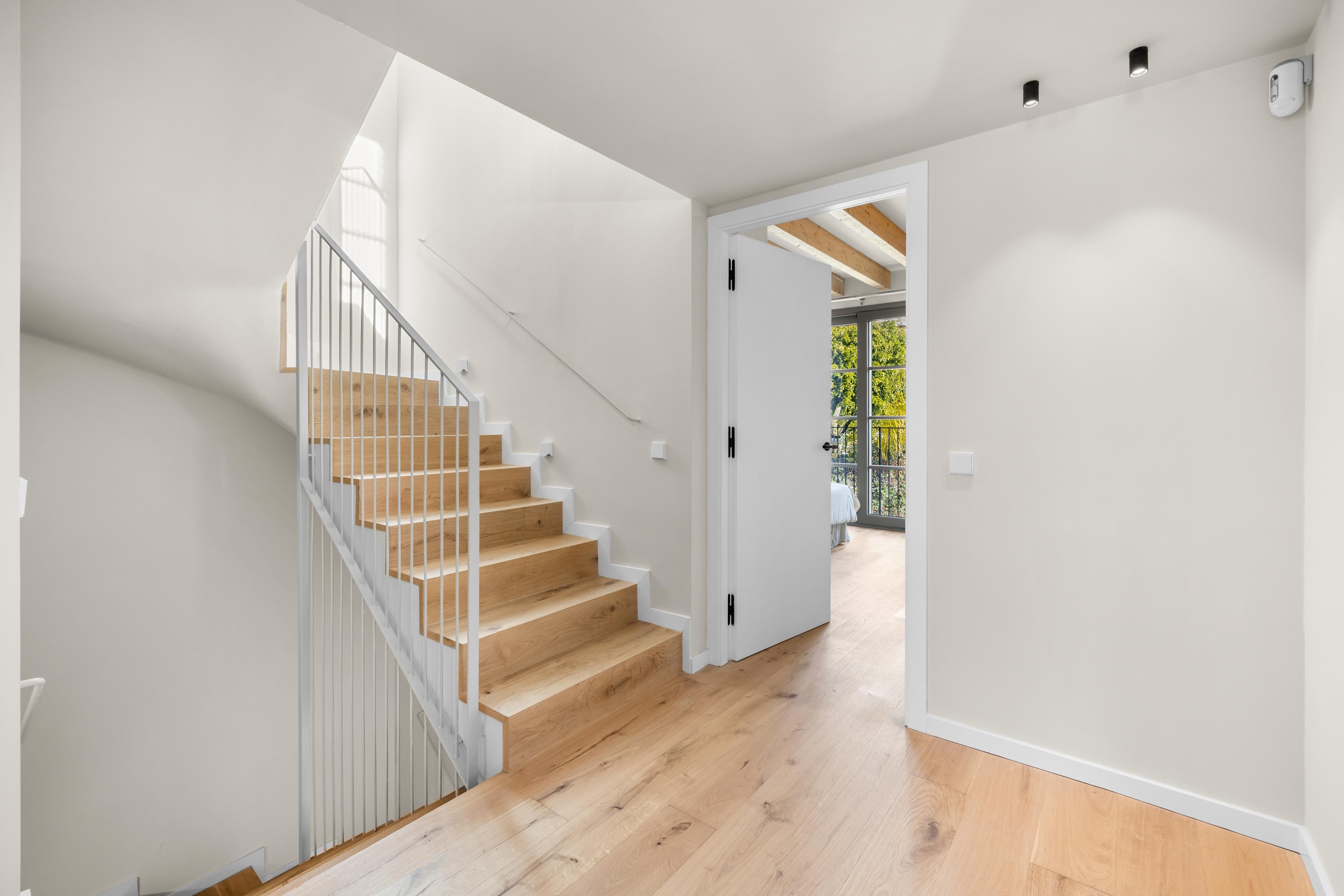 På övervåningen erbjuder fastigheten tre vackert designade sovrum och två badrum, alla fyllda med naturligt ljus och en varm, inbjudande atmosfär. Huset kröns av en rymlig takterrass, som ger den ultimata hemkänslan och den perfekta miljön för att njuta av panoramautsikten, solskenet och lugna kvällar under bar himmel.