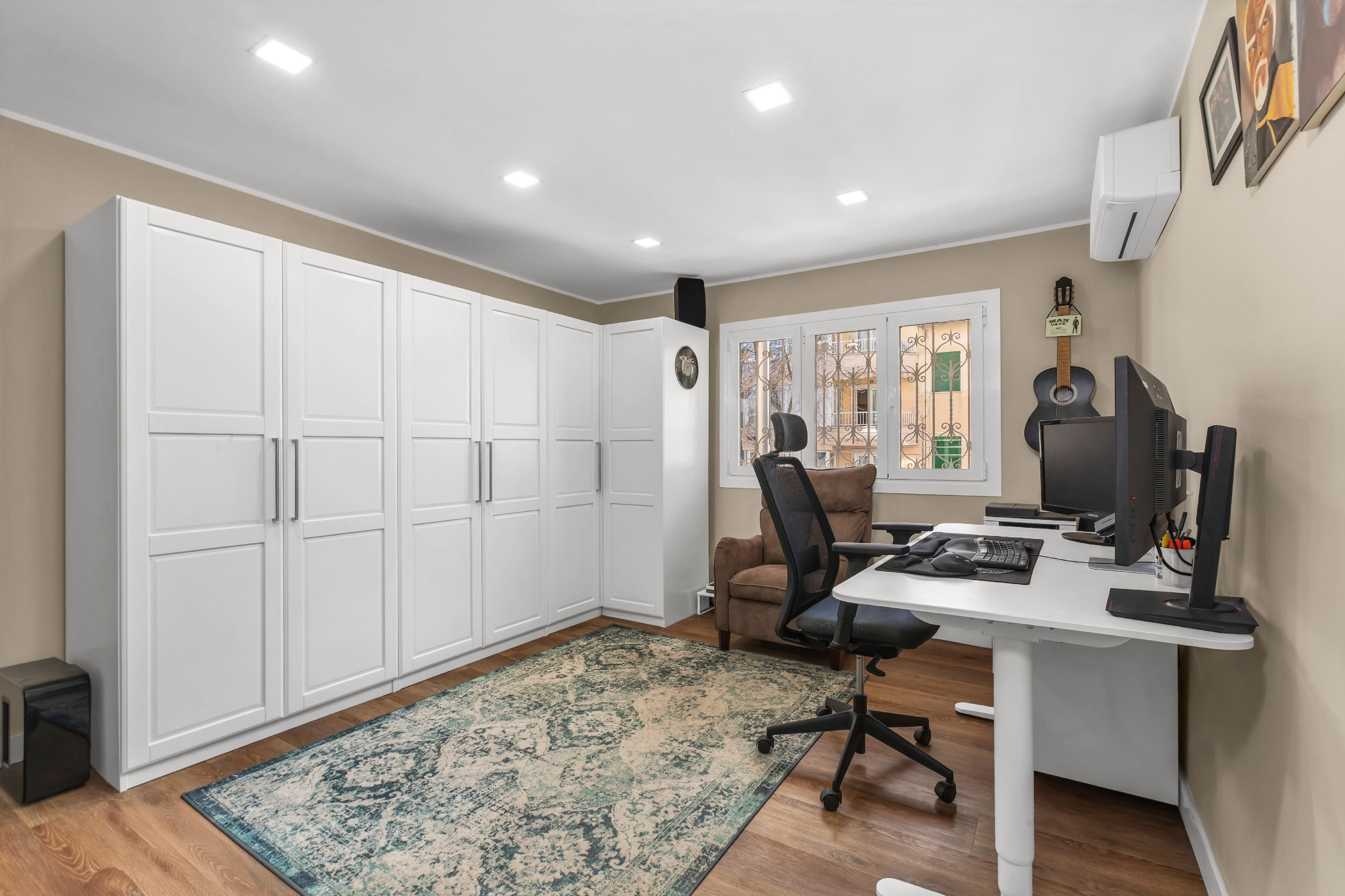Typ: Lägenhet • Region: Palma • Byggnadsår: 1966 • Senaste restaureringen: 2024 • Total yta: 148 ㎡ • Rum totalt: 4 • Sovrum: 3 • Badrum: 2 • Bostadsutrymme: 90 ㎡ • Balkonger: 1 • Terrass • Kök • Hiss • Tillgänglig med rullstol • Gästtoalett • Seniororienterad • Uppvärmning: Split-luftkonditionering • Brandtyp: Värmepump • Golv: Parkett