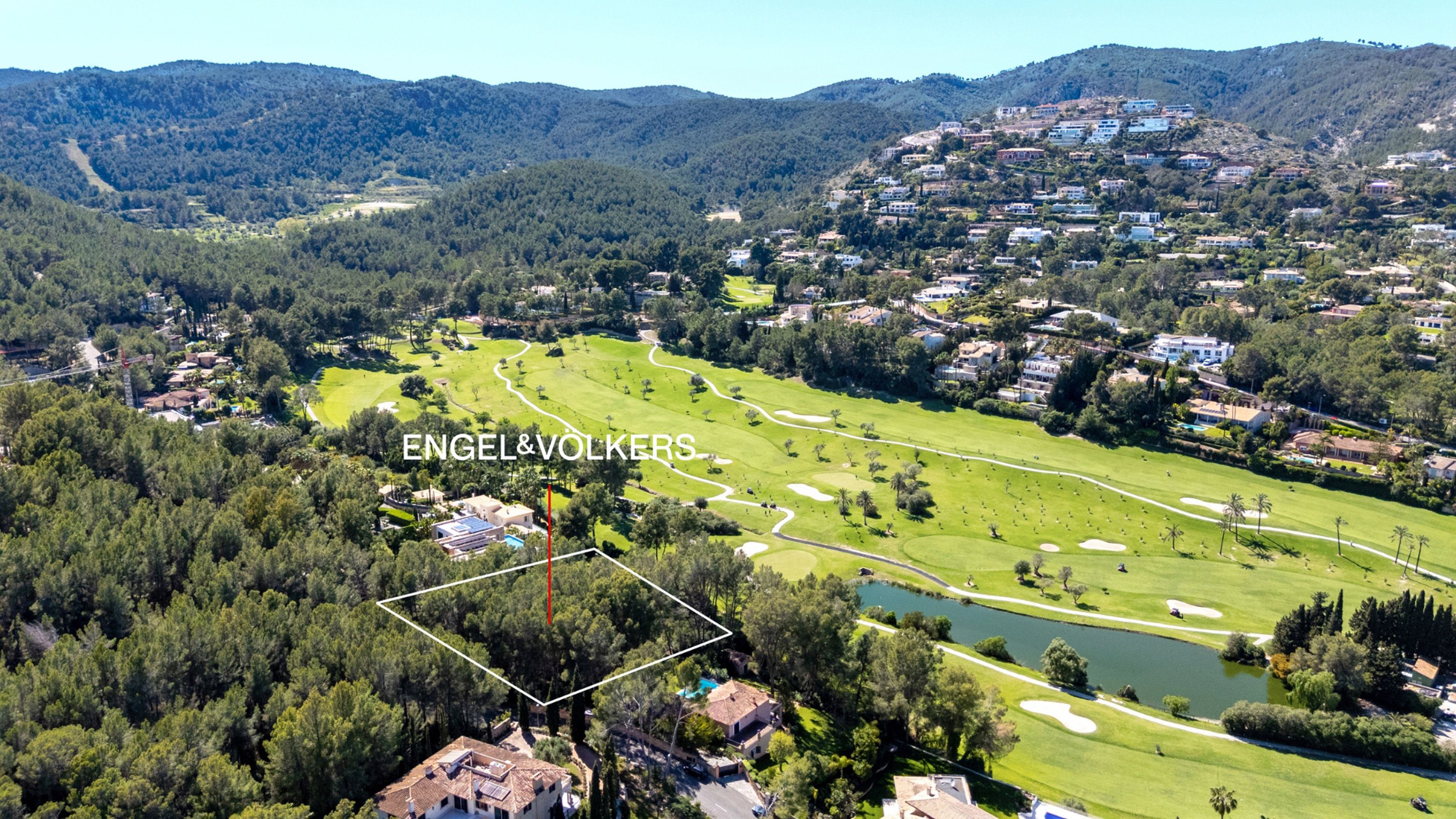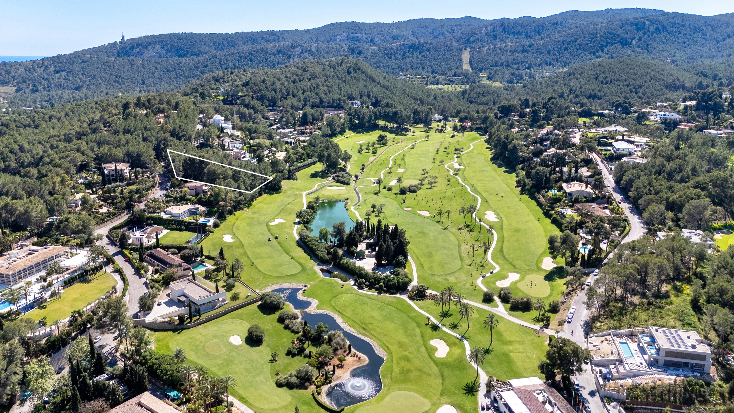 Underbar byggnadstomt med 3 553 m² och nordvästlig orientering i första raden av Son Vida golfbana. Det tillåter byggandet av en fristående villa med två våningar och pool, med en byggnadsdensitet på 33%.