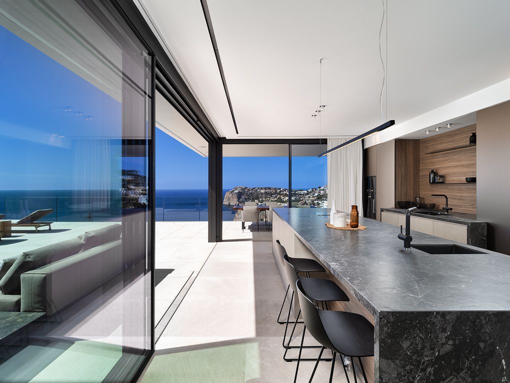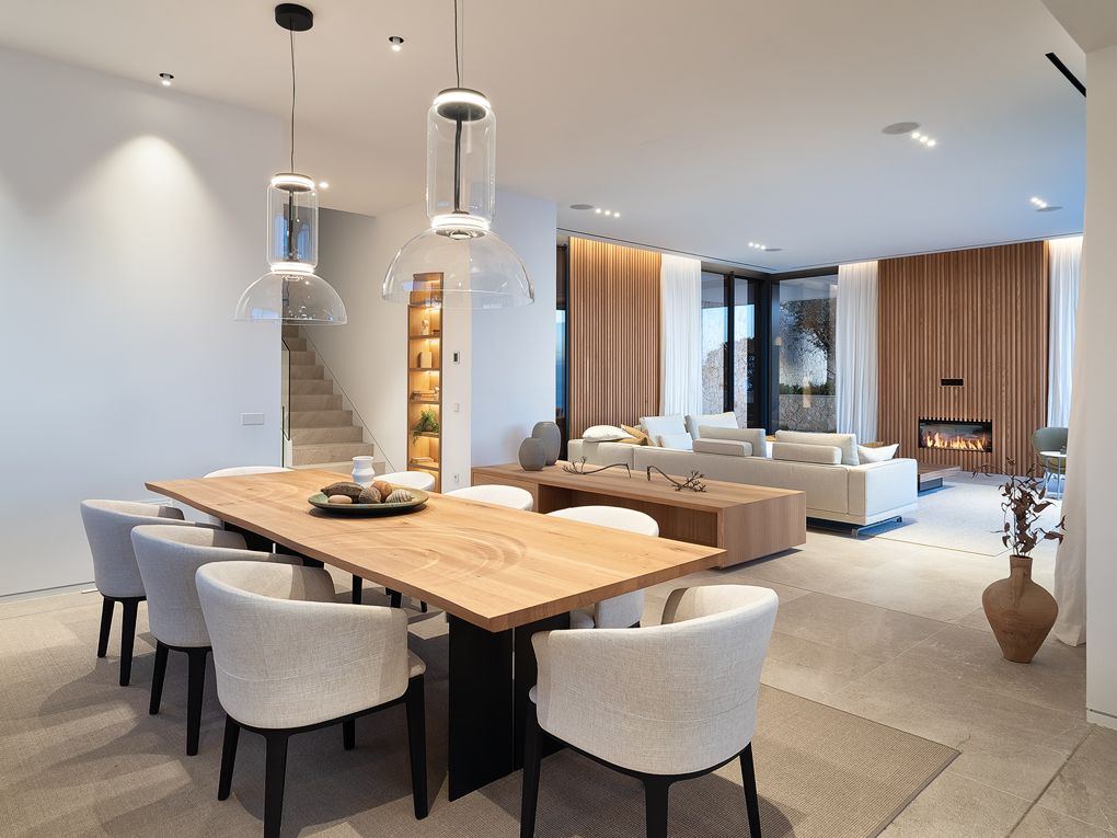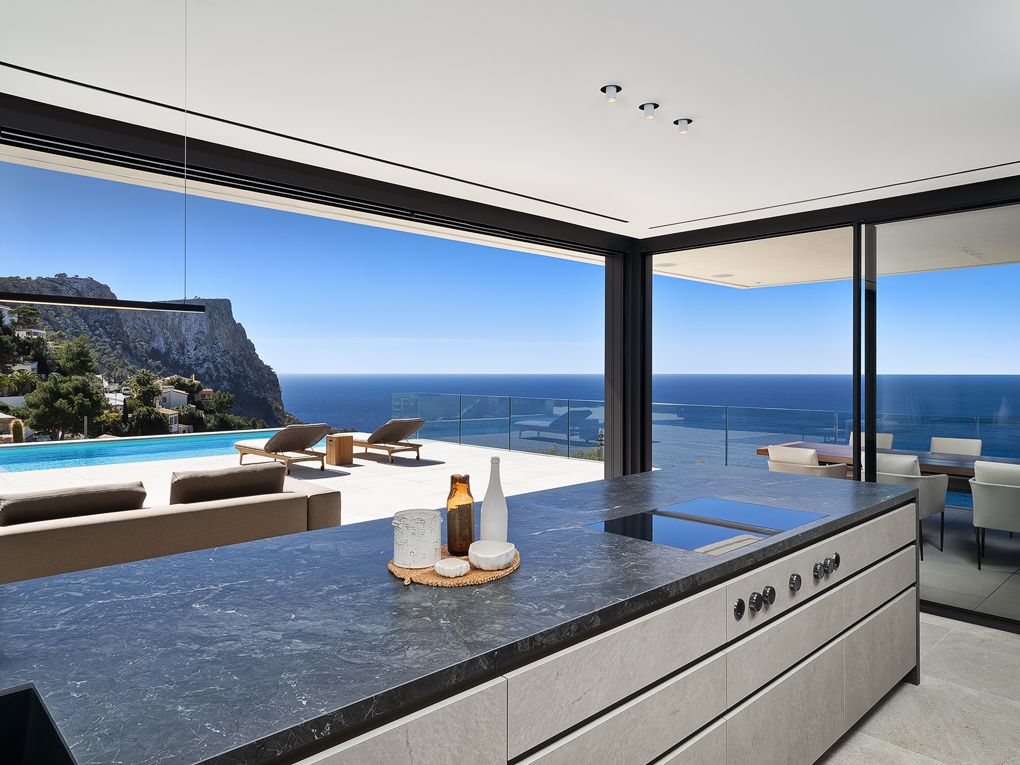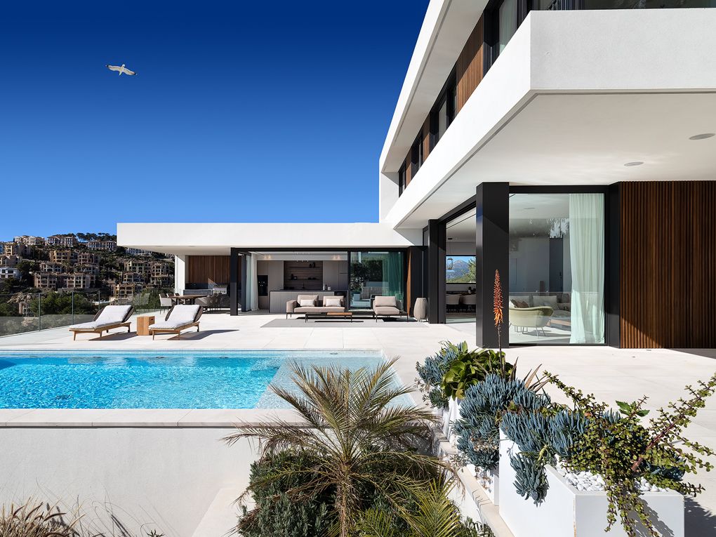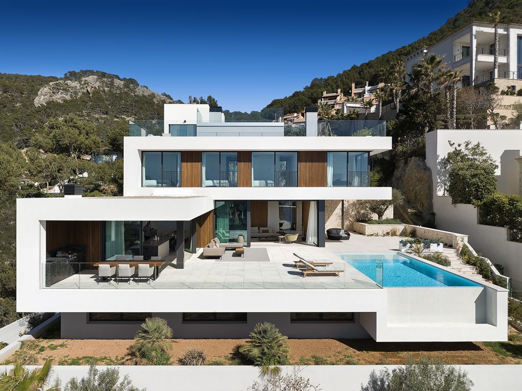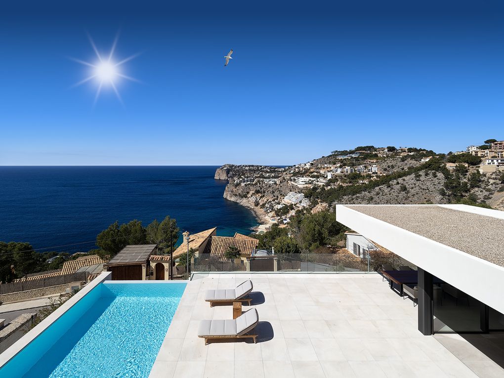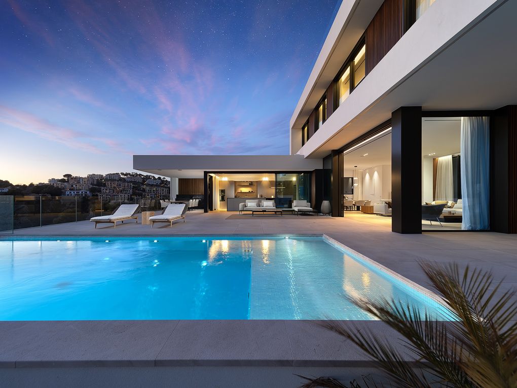 Denna nybyggda villa i sydvästläge med panoramautsikt över havet och spektakulära solnedgångar ligger på en av de mest privilegierade platserna i Cala Llamp. Den övre våningen erbjuder 4 sovrum, alla med eget badrum och fantastisk havsutsikt från alla rum. På bottenvåningen hittar du det rymliga vardagsrummet som leder till det öppna köket och matsalen, och in mot den stora täckta terrassen med utekök och matplats, med utsikt över infinitypoolen och Medelhavet. På baksidan av denna nybyggda villa finns en generöst anlagd trädgård med gräsmatta. I källaren erbjuder fastigheten spa och fitnessområde samt ytterligare 2 sovrum. Det rymliga garaget ger plats för 3 bilar. Alla våningar är internt anslutna med en hiss. Ytterligare funktioner inkluderar golvvärme med värmepump, trädgård med gräsmatta, hiss, pool på roofterrace, utekök.