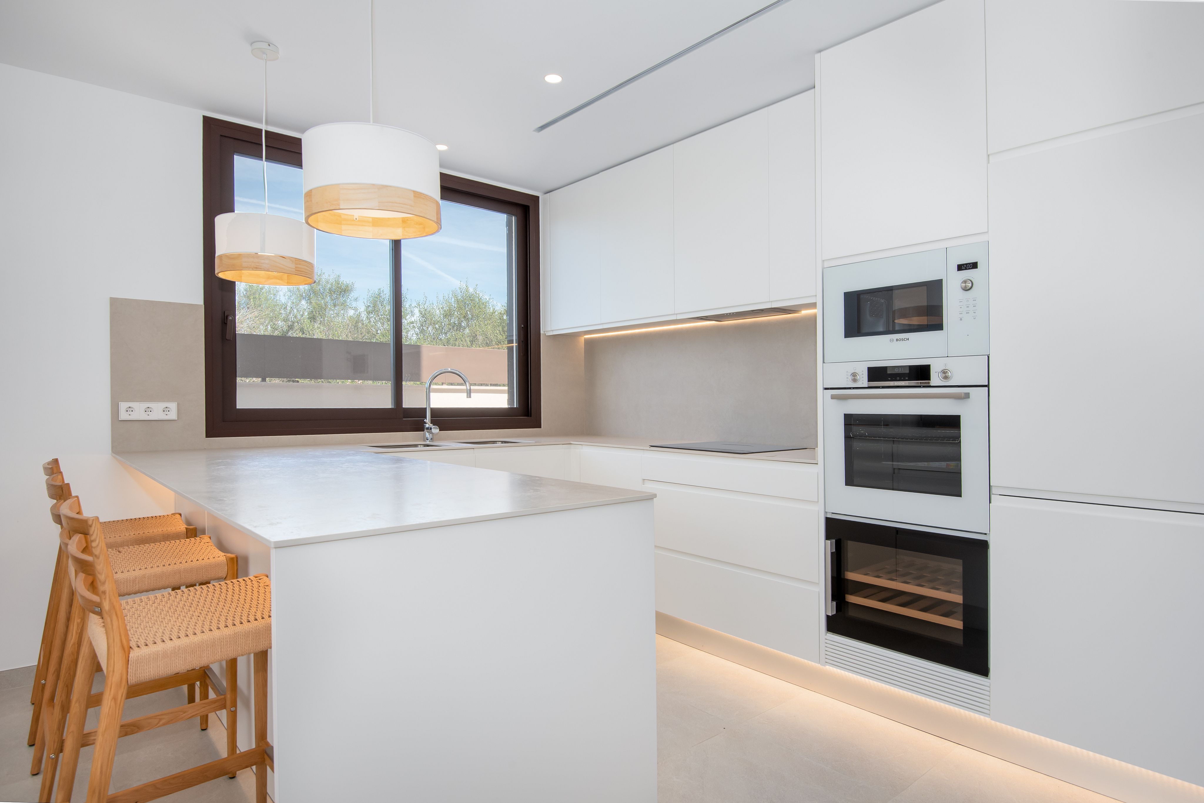 Denna moderna fastighet erbjuder den perfekta balansen mellan modern design och maximal komfort i ett av de lugnaste kustområdena på Mallorca. Huset, som säljs fullt möblerat, har tre rymliga sovrum, två badrum, en praktisk tvättstuga och luftkonditionering för den perfekta temperaturen när som helst på året. Husets mittpunkt är det ljusa vardagsrummet med matsal och kök i öppen planlösning, fullt utrustat med Bosch-apparater och en exklusiv vinkyl. Vardagsrummet flyter sömlöst in i utomhusområdet, där du kan njuta av en privat terrass med pool.