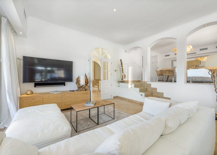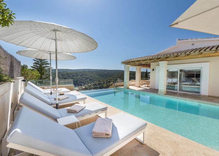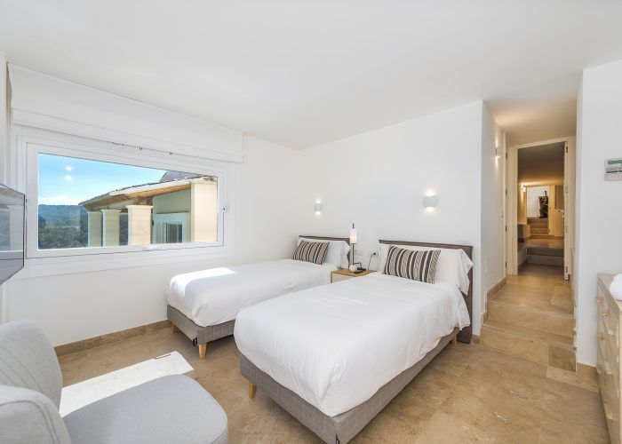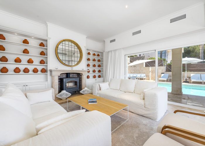 Denna vackra villa har ett unikt läge i Portals Vells-bukten. Den har 5 fullt utrustade sovrum, 4 badrum och ett rymligt vardagsrum och matplats. Från terrassen och de intilliggande utomhusområdena kan du njuta av en omisskännlig utsikt över den turkosblå bukten. Huset är tillgängligt för långtidsuthyrning från oktober 2022. Pool- och trädgårdsunderhåll ingår i hyrespriset, enskilda verktyg betalas av hyresgästen. Den senaste renoveringen ägde rum 2020/2021.