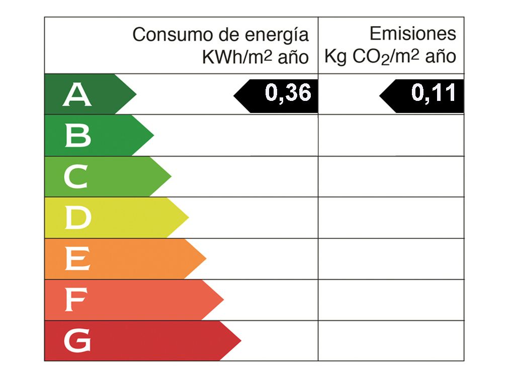 Byggnadsår: 2024 • Värde för energiförbrukning: 0.36 kWh/(m2*a) • Utsläpp av CO2: 0.11 kg/m2 • Klassning av CO2-utsläpp: A • Brandtyp: Värmepump • Brandtyp: Solenergi • Klassificering av energieffektivitet: A
