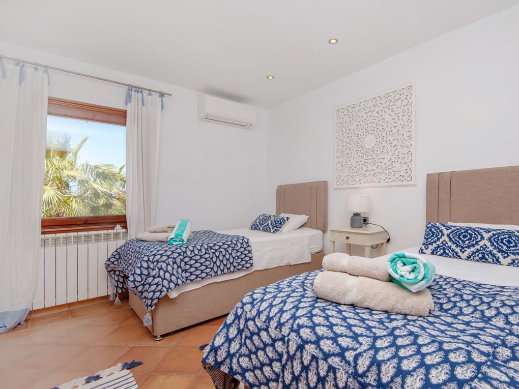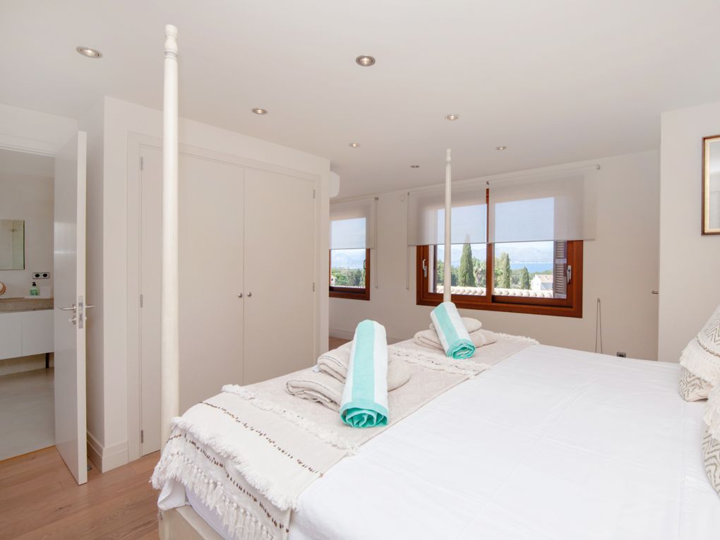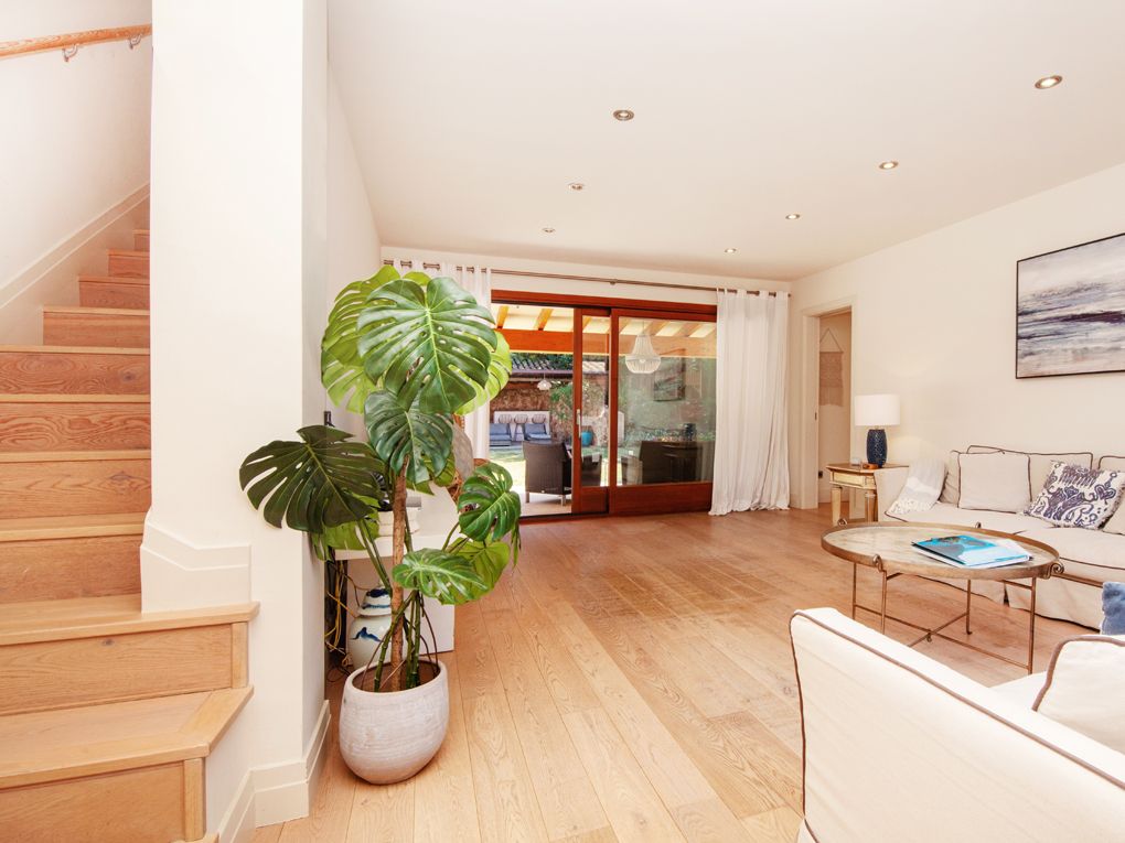 Din perfekta semester på norra Mallorca: Fastigheten ligger på den pittoreska kullen Bonaire, ett lugnt bostadsområde omgivet av natur. Det är bara några minuter från marinan "Cocodrilo" och de vackra stränderna Sant Joan och Sant Pere. Den omsorgsfullt anlagda trädgården erbjuder omfattande grönområden omgivna av mogna träd och buskar, vilket garanterar total integritet. Med en rymlig uppvärmd pool, en terrass med solstolar för solbad och en täckt veranda med bekväma loungemöbler, är utomhusområdet perfekt för att njuta av tid med familjen. Här finns också en grillplats och en bar med en mysig chill-out-zon. Ett halvtäckt område med ett stort matbord utomhus, beläget nära köket, kompletteras med ett bordtennisbord för att ge underhållning. Utan tvekan ett perfekt utrymme för avkoppling och umgänge. Inuti imponerar fastigheten med sin moderna inredning och högkvalitativa armaturer och beslag. Det rymliga vintervardagsrummet med öppen spis kombineras perfekt med det moderna köket, som är fullt utrustat för att möta de mest krävande behoven. På detta plan finns tre sovrum med dubbelsäng: två med enkelsängar och ett med dubbelsäng, samt två badrum, ett med dusch och ett med badkar. Några trappsteg upp leder till ett andra vardagsrum, inrett med trägolv och rymliga soffor. Härifrån öppnas stora dörrar ut till verandan som leder till trädgården och poolen. Intill detta vardagsrum ligger ett sovrum med direkt tillgång till trädgården, dubbelsäng och eget badrum med dusch. Master-sviten ligger på övervåningen och har en himmelssäng, en läshörna, en klädkammare och ett eget badrum. Från detta rum kan gästerna njuta av hisnande utsikt över bergen och Pollensabukten. Ett elegant, harmoniskt och bekvämt hem nära havet som erbjuder allt som behövs för en avslappnad och lyxig livsstil. NRA: ETV/8773. VUD: ESFCTU0000070430000845360000000000000000000000000000000000000000ETV/87737Faciliteter
